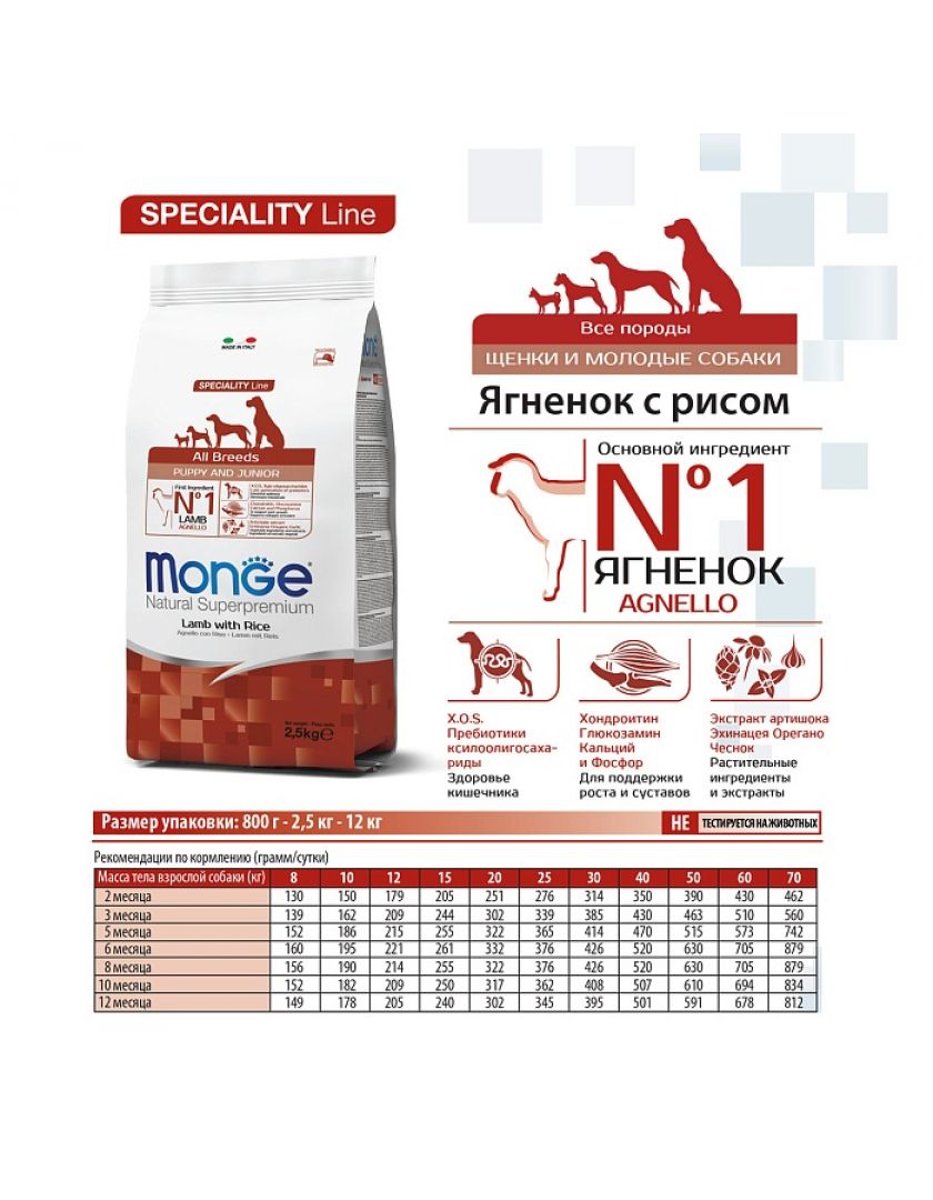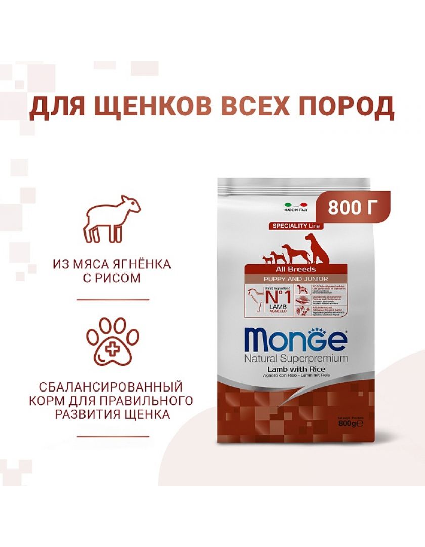 Monge (Монж) Dog Speciality Line Puppy & Junior All Breeds сухой корм из мяса ягнёнка и риса для щенков всех пород