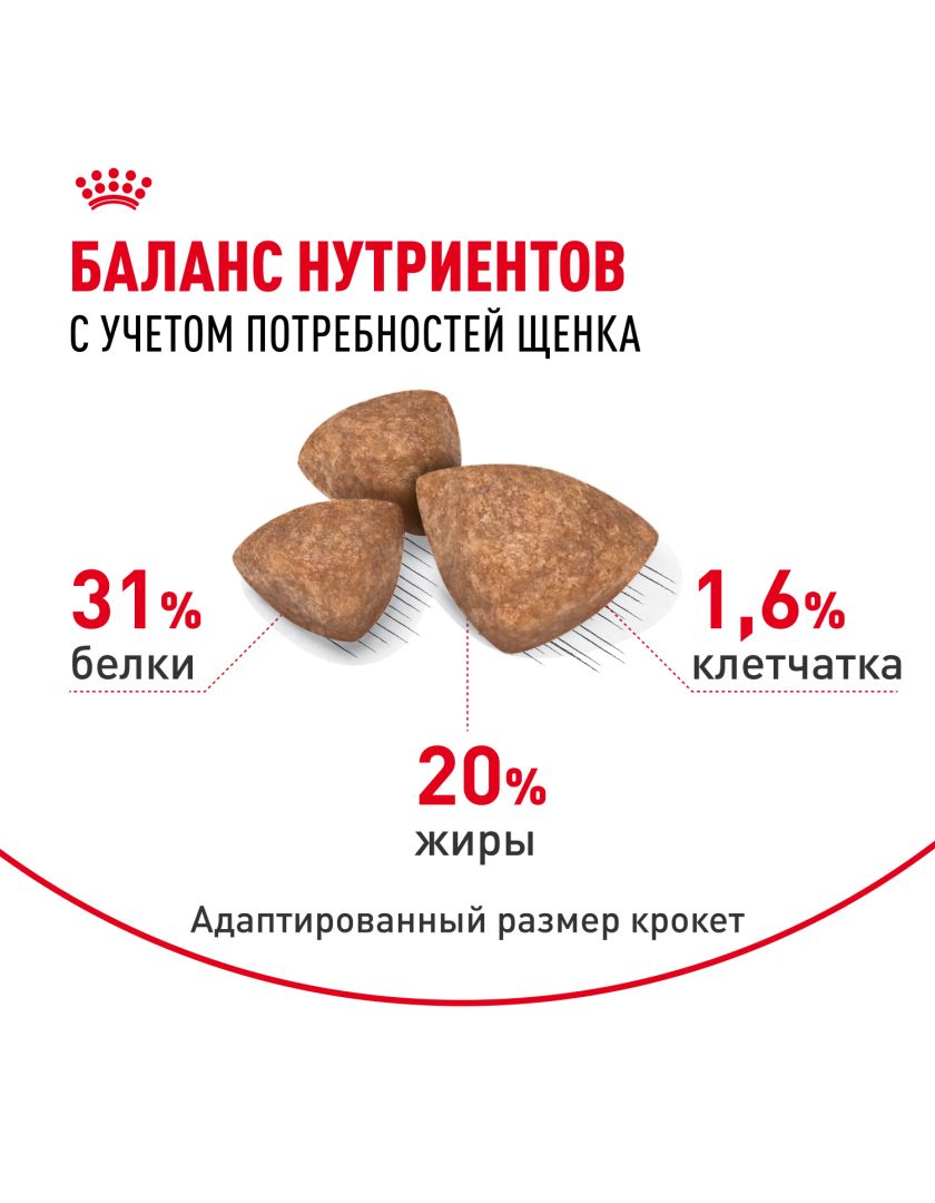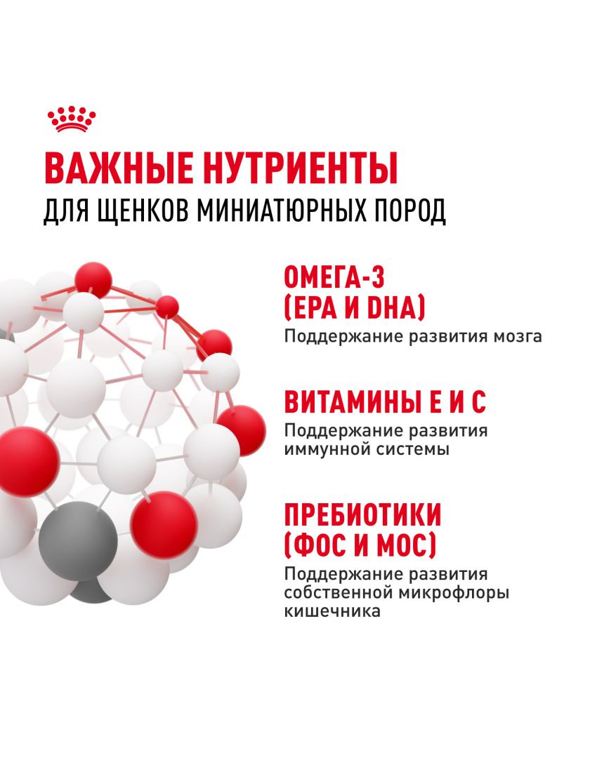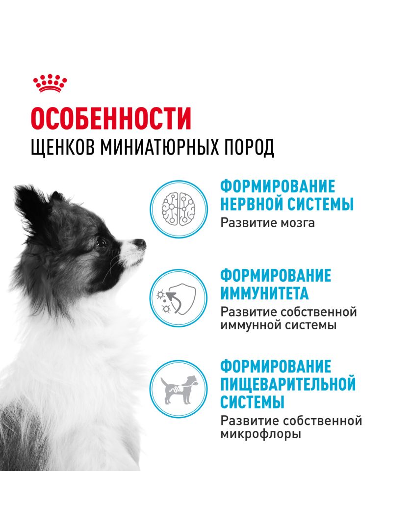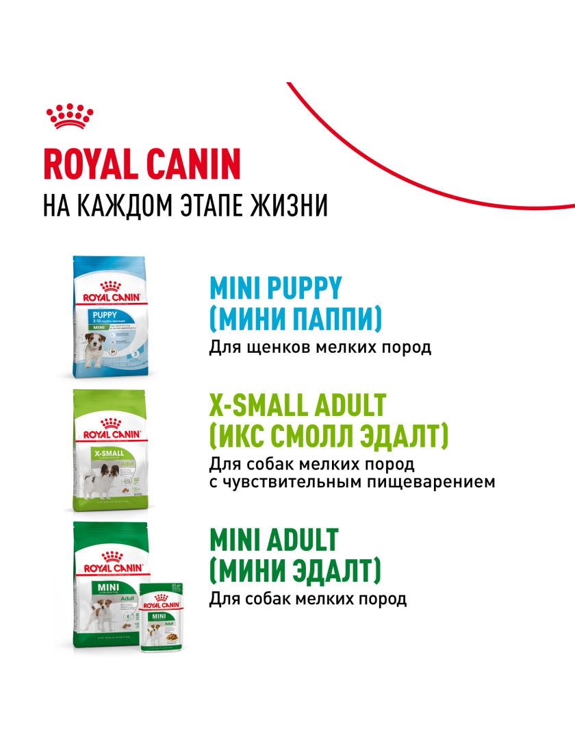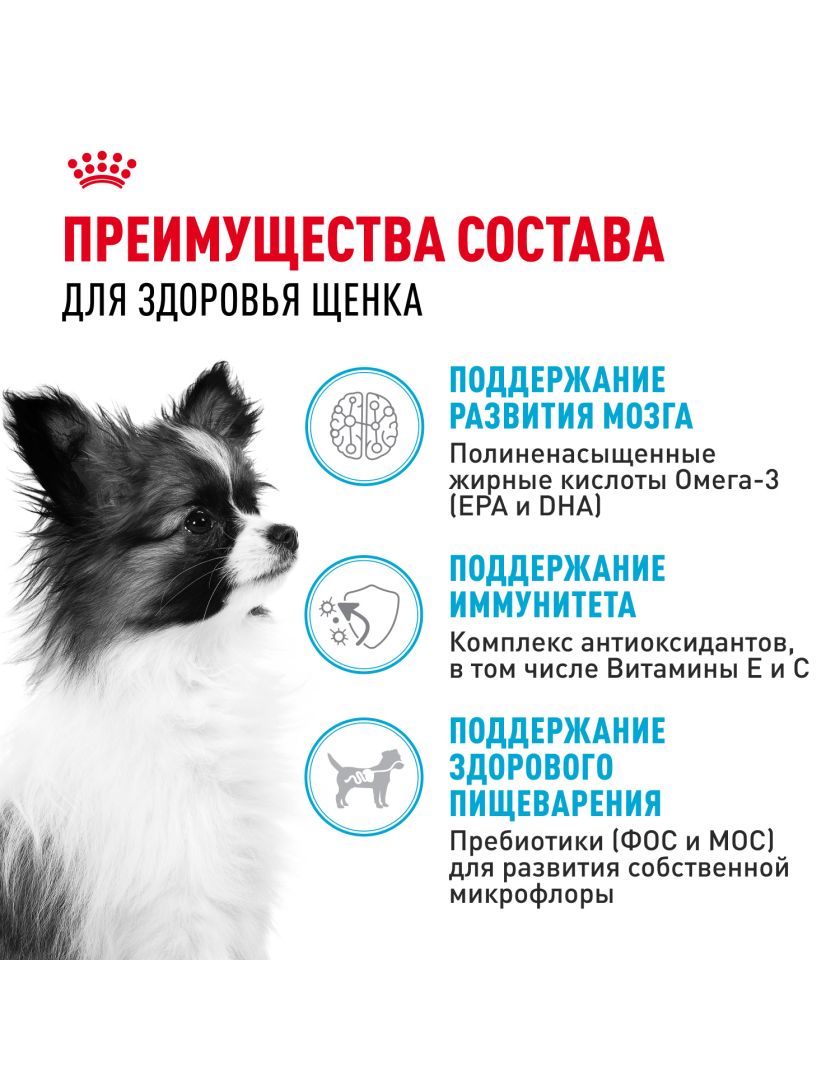 Корм сухой полнорационный для щенков миниатюрных пород (вес взрослой собаки до 4 кг) в возрасте до 10 месяцев X-SMALL PUPPY 2-10 months (ИКС СМОЛЛ ПАППИ 2-10 месяцев) ROYAL CANIN®, подходящий для щенков миниатюрных пород в возрасте до 10 месяцев, специально разработан с учетом потребностей в питательных веществах вашего щенка в период роста.
