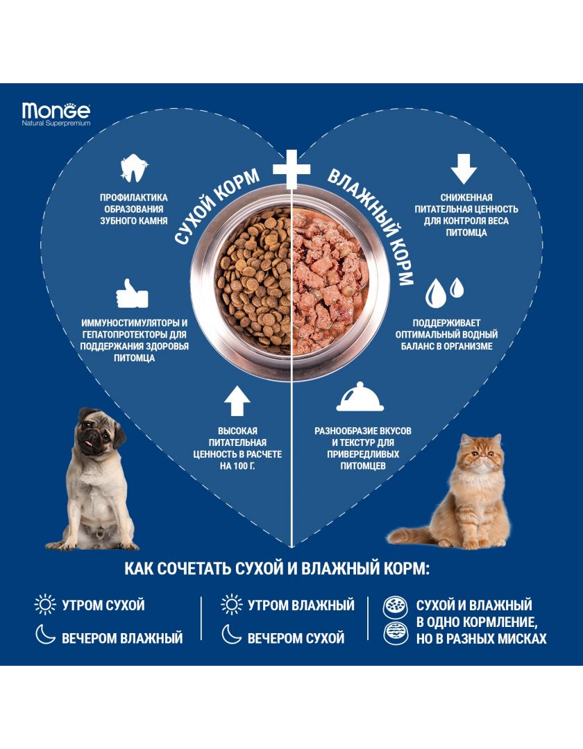 Особенная технология приготовления, путем смешивания мясных кусочков и паштета, придаёт корму необычную текстуру, что сможет удивить и заинтересовать вашего питомца.