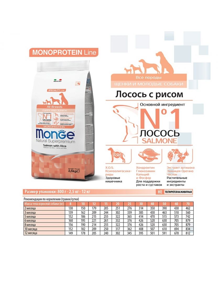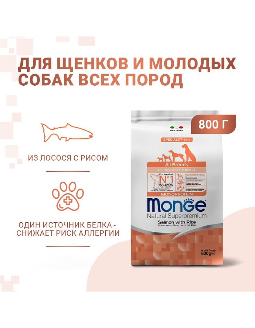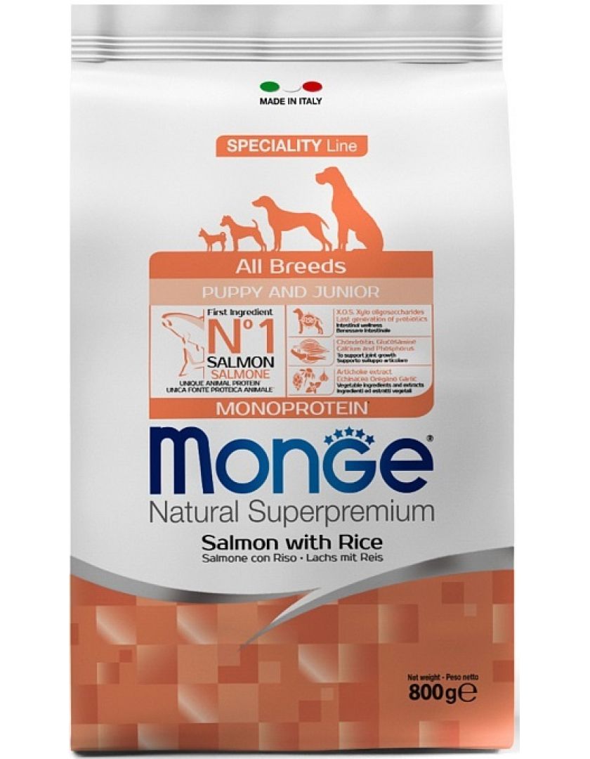 Monge (Монж) Dog Speciality Line Monoprotein Puppy&Junior сухой корм из мяса лосося с рисом для щенков всех пород