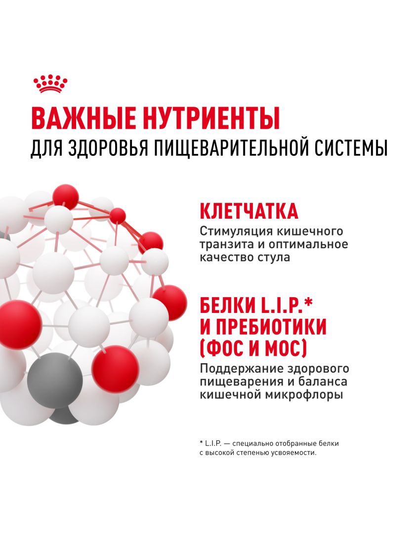 Сбалансированная формула ROYAL CANIN® Mini Digestive Care (МИНИ ДАЙДЖЕСТИВ КЭА) способствует поддержанию здоровья пищеварительной системы за счет содержания высокоусвояемых белков (L.I.P.*), комбинации пребиотиков, различных видов клетчатки, благодаря чему поддерживает баланс микрофлоры кишечника и оптимальное качество стула.
