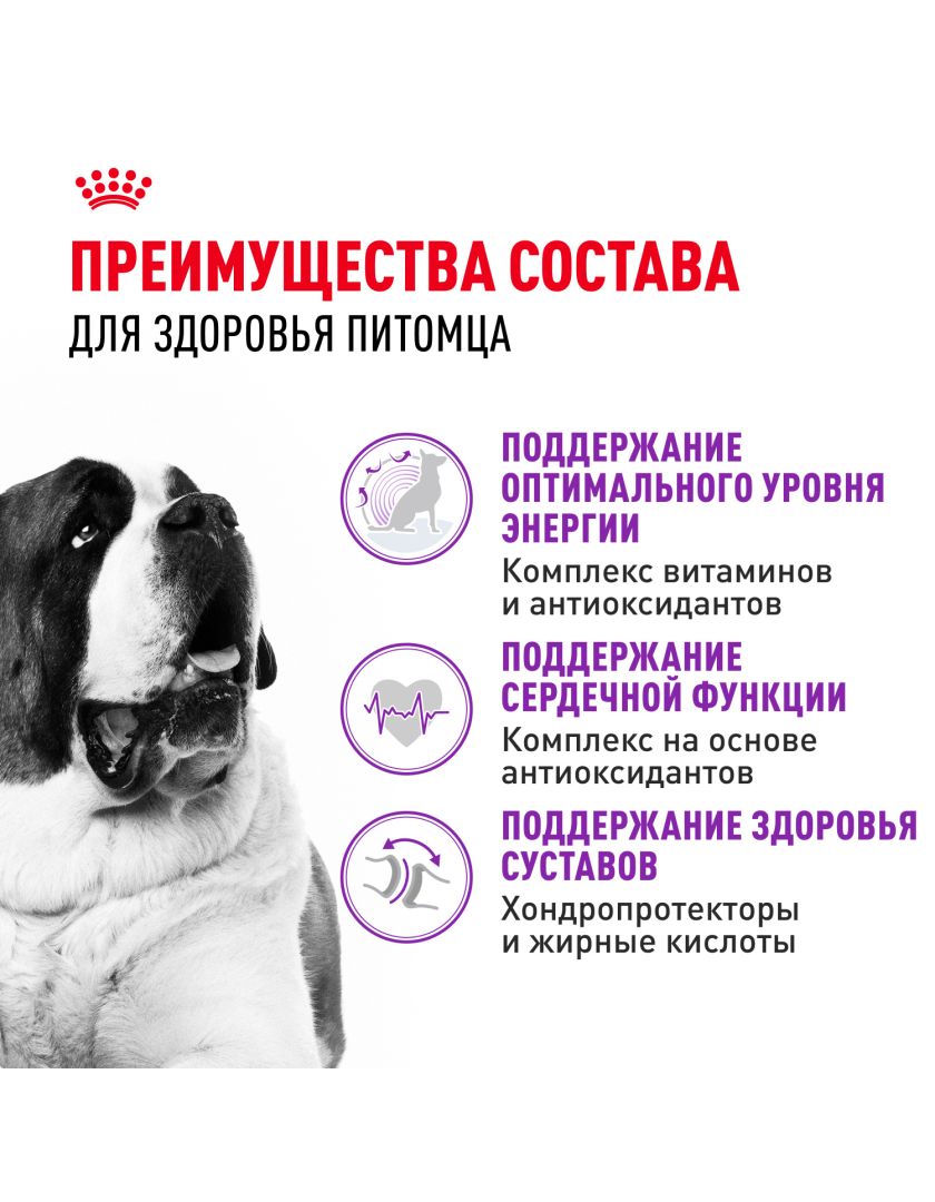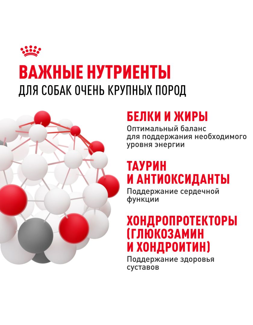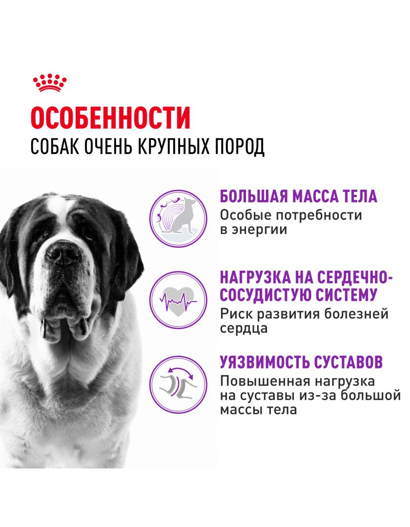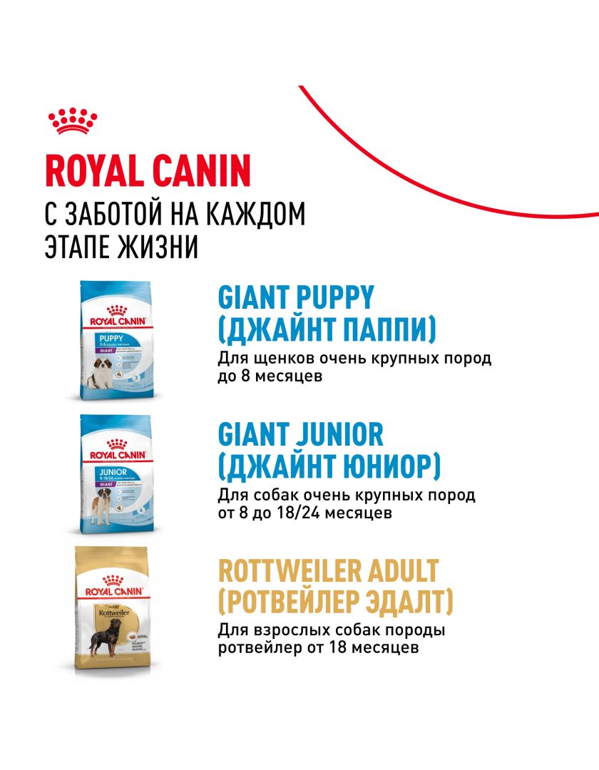 Корм сухой полнорационный для взрослых собак очень крупных размеров (> 45 кг) в возрасте 18/24 месяцев и старше GIANT ADULT (ДЖАЙНТ ЭДАЛТ) ROYAL CANIN®, подходящий для собак очень крупных пород в возрасте от 18/24 месяцев, специально разработан с учетом потребностей вашей собаки в питательных веществах.