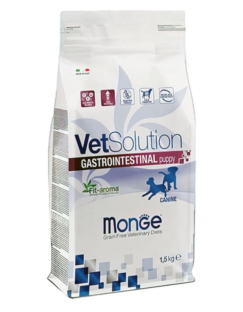 Monge (Монж/Монже) VetSolution Gastrointestinal Puppy — полнорационный сухой диетический корм из курицы для щенков «Gastrointestinal » для устранения симптомов расстройства пищеварения у щенков.