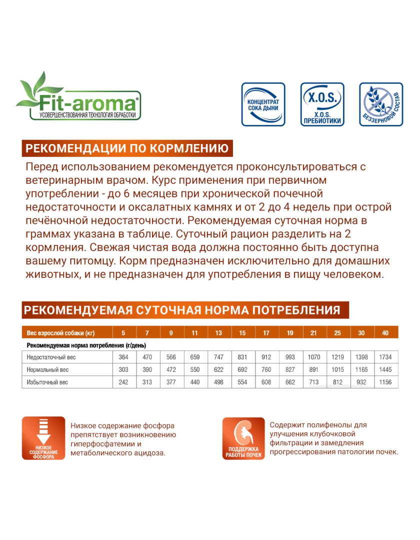 Перед использованием рекомендуется проконсультироваться с ветеринарным врачом. Курс применения при первичном употреблении - до 6 месяцев при хронической почечной недостаточности и оксалатных камнях, от 2 до 4 недель при острой почечной недостаточности. Рекомендуемая суточная норма в граммах указана в таблице. Суточный рацион разделить на 2 кормления. Свежая чистая вода должна постоянно быть доступна вашему питомцу. Корм предназначен исключительно для домашних животных, и не предназначен для употребления в пищу человеком.
