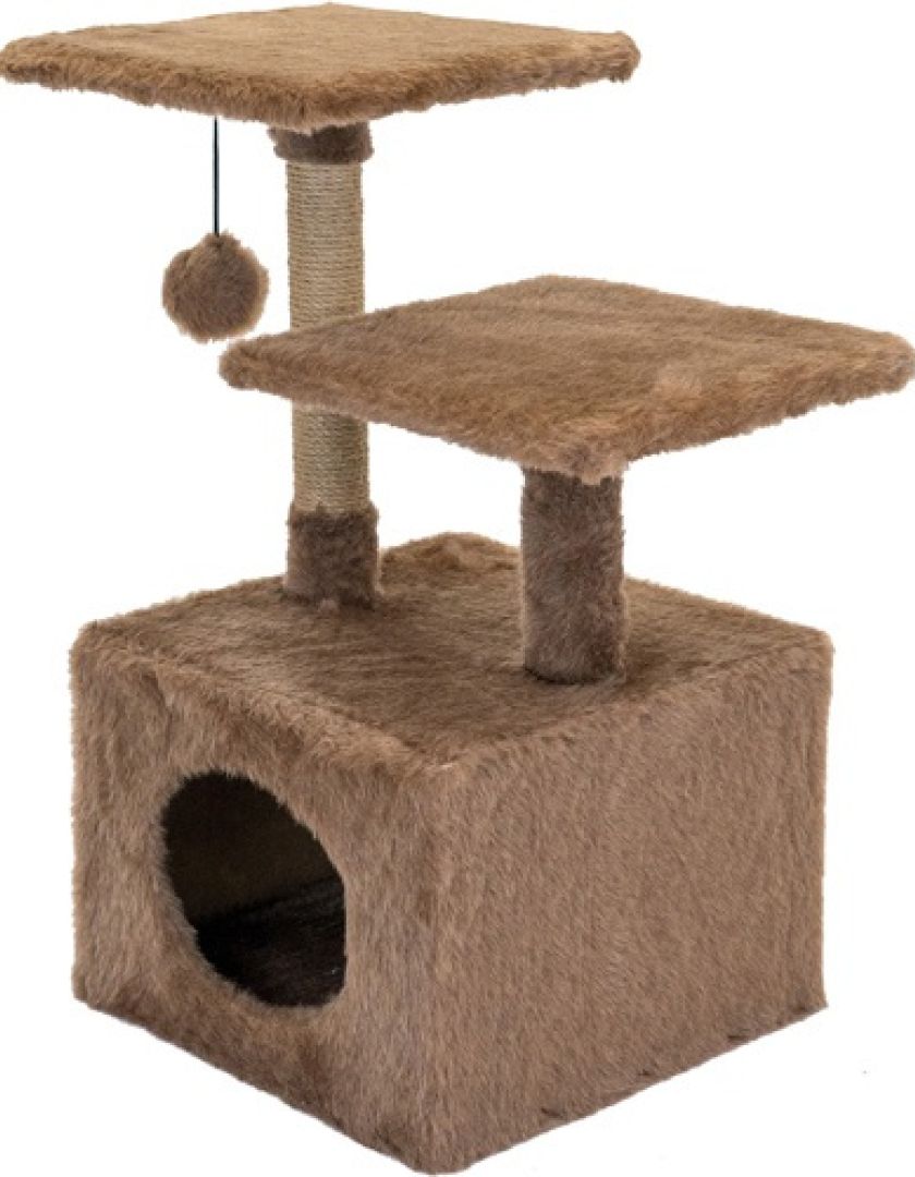 Домик-когтеточка для кошек Дарэлл ЧИП 2-х уров. квадратный с 2-мя полками (мех, джут)