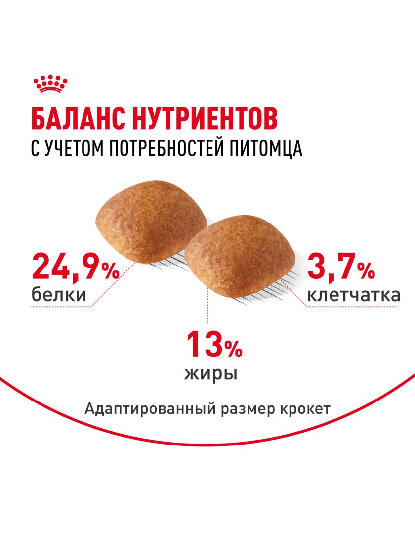 Помогает поддерживать оптимальный вес благодаря ограниченному содержанию жиров и оптимальному уровню белков.