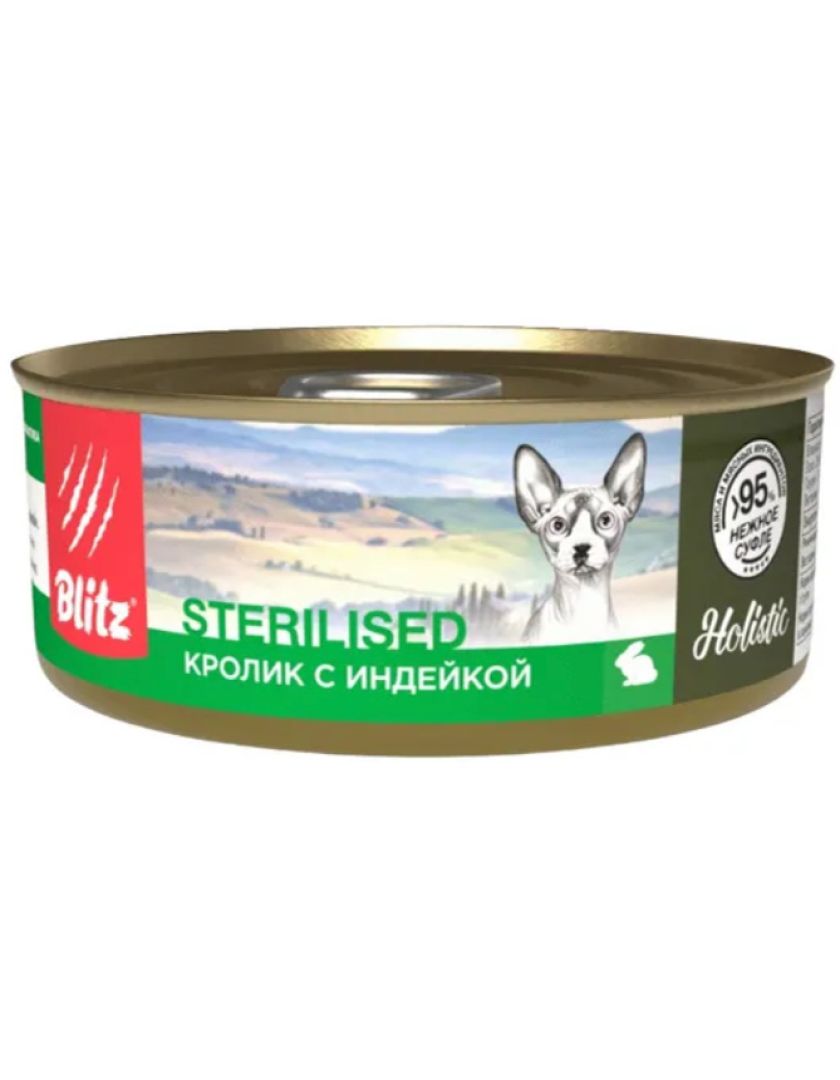 Консервы для кошек BLITZ Holistic Sterilised Стерил кролик/индейка суфле