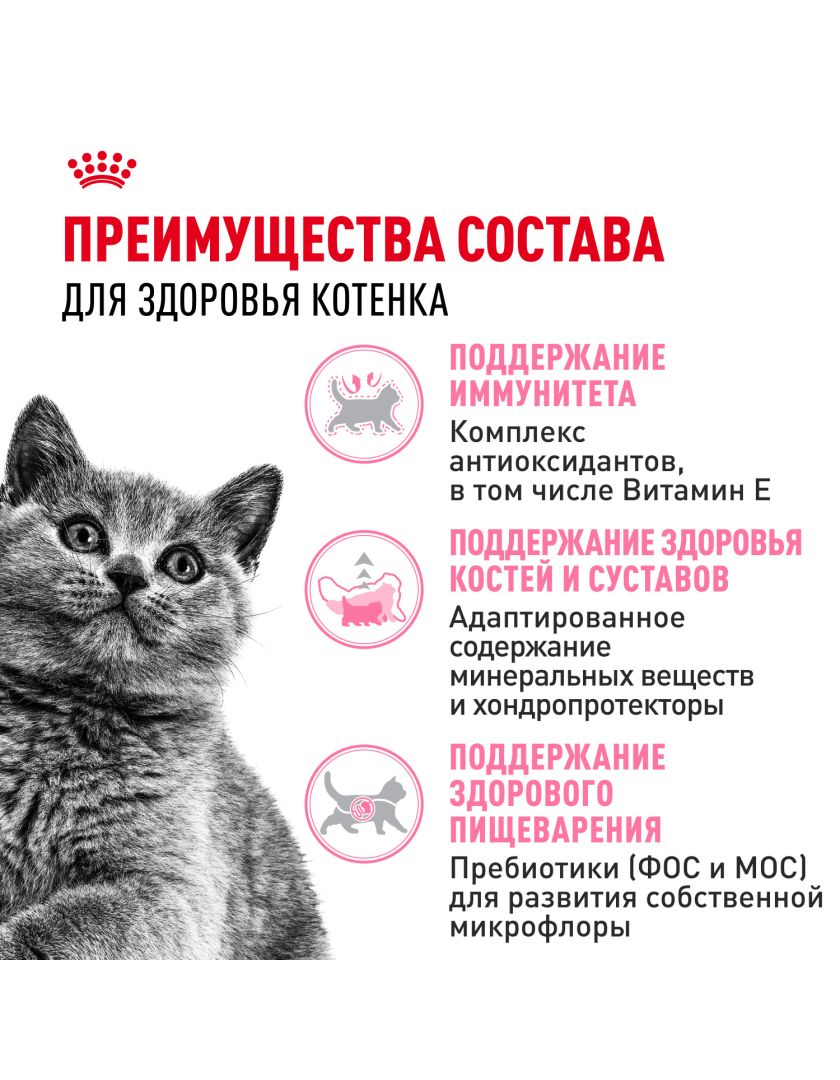 Поскольку иммунная система вашего котенка развивается постепенно, корм ROYAL CANIN® British Shorthair Kitten (БРИТАНСКАЯ КОРОТКОШЕРСТНАЯ КИТТЕН) содержит эффективный комплекс антиоксидантов для поддержания иммунитета котят.