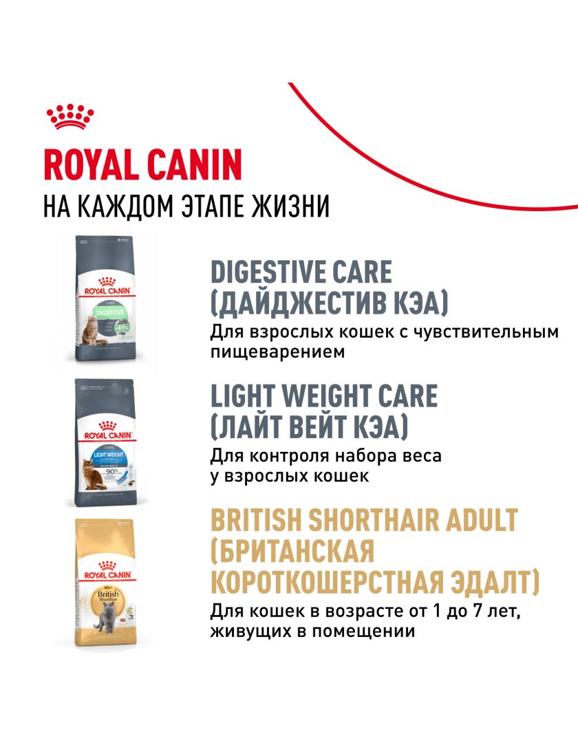 Размер и текстура гранул в форме полумесяца ROYAL CANIN® British Shorthair Kitten (БРИТАНСКАЯ КОРОТКОШЕРСТНАЯ КИТТЕН) разработаны специально для удобства захвата британскими короткошерстными котятами.
