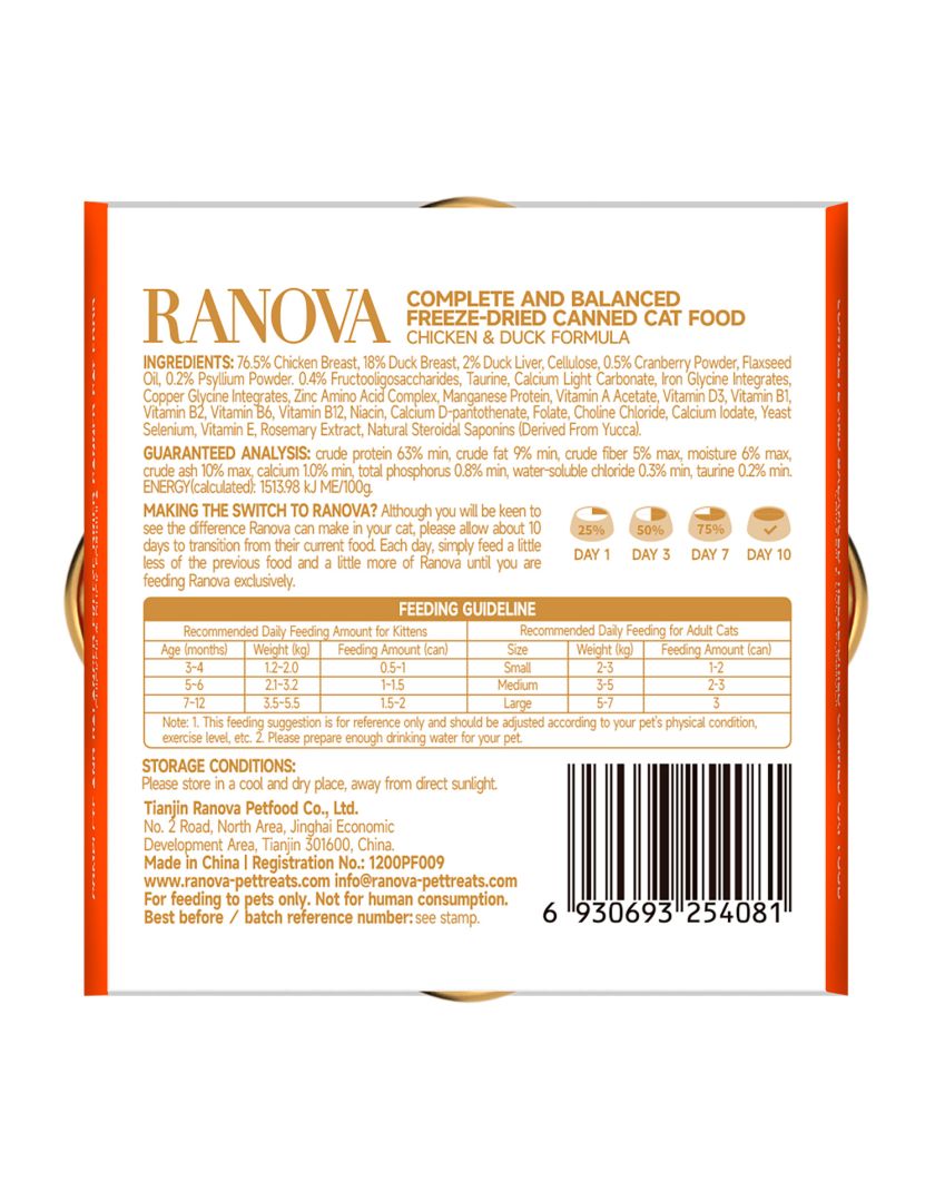 Полнорационный сухой (сублимированный) корм Ranova для кошек консервированный с курицей и уткой