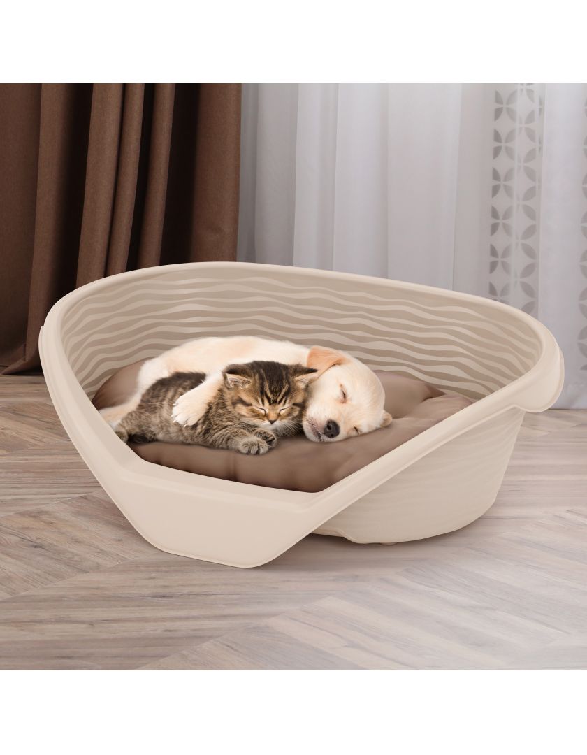 Лежак станет любимым уголком вашего питомца, обеспечит ему желанное укрытие, подарит ощущение комфорта и уединения. Изделие не составит труда соблюдать в чистоте: его легко мыть и дезинфицировать. Лежак не впитывает запахи и надежно прослужит Вам долгое время, так как изготовлен из прочного пластика. Также он оснащен антискользящими ножками, а нижняя часть имеет перфорацию для циркуляции воздуха.