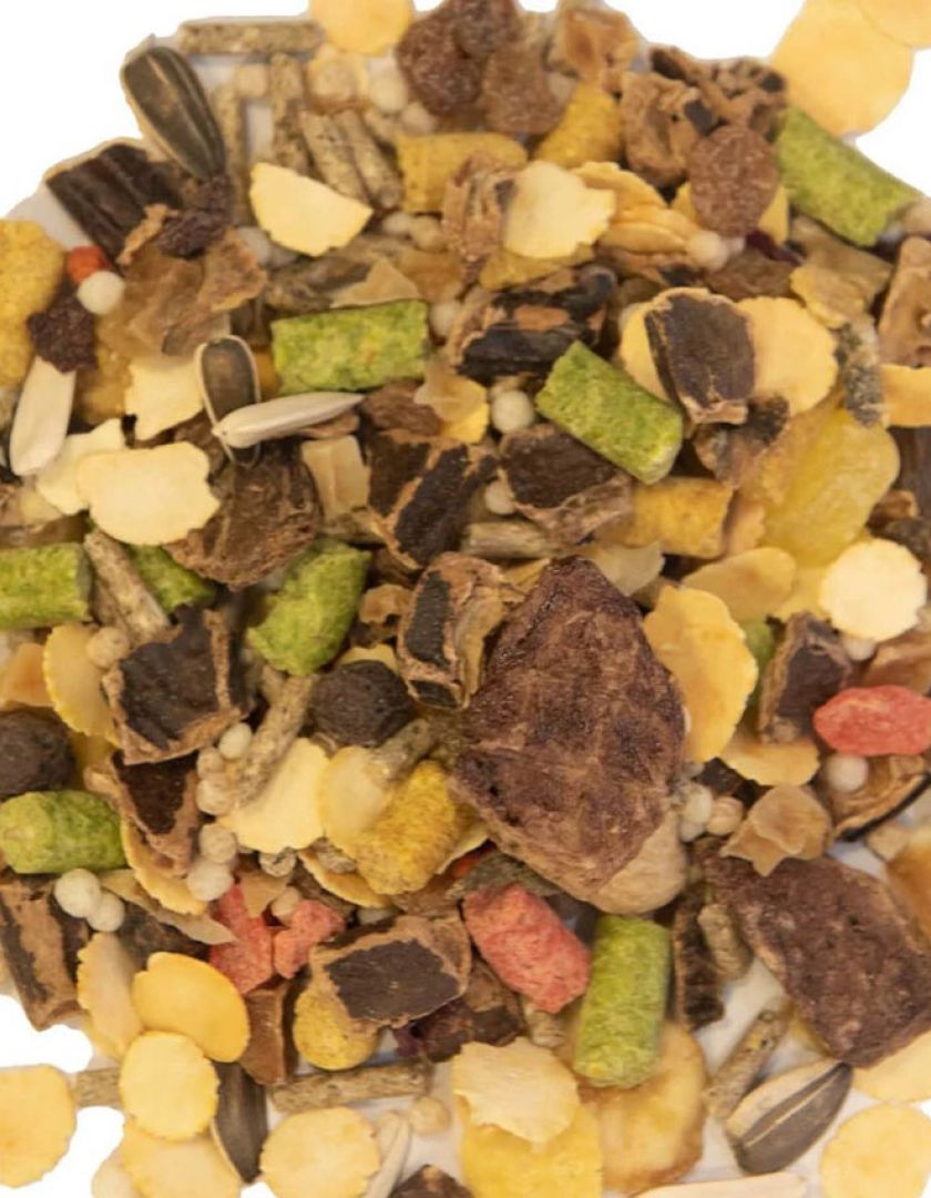 В наши корма входят не только зерновые культуры, но так же кусочки фруктов и овощей, растительные компоненты, белки, витамины и микроэлементы, что обеспечивает необходимый витаминно-минеральный баланс вашего питомца, что в сочетании с постоянным контролем качества гарантирует здоровье и долгую жизнь Вашего питомца.