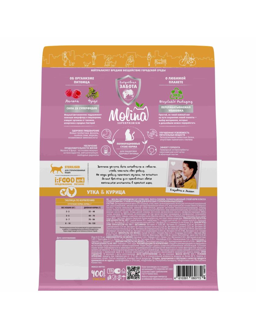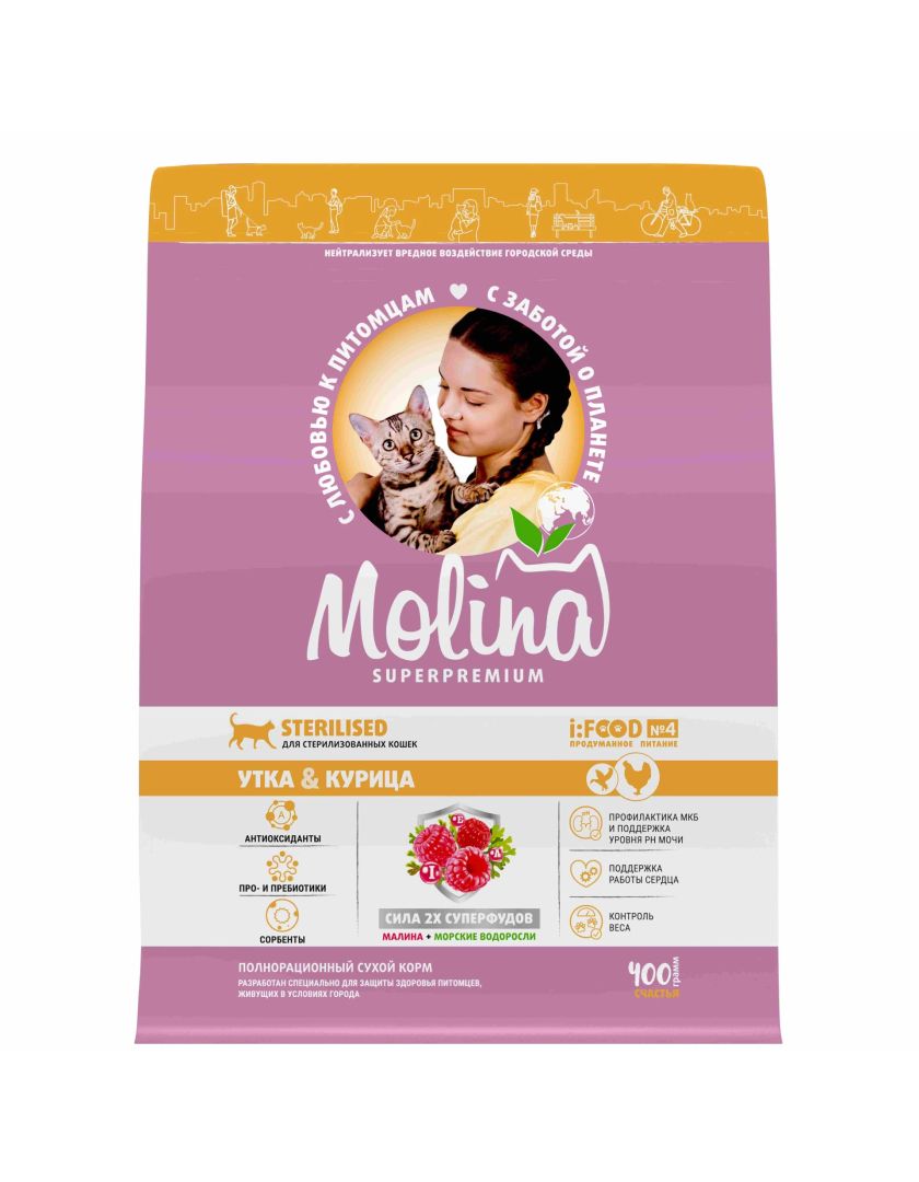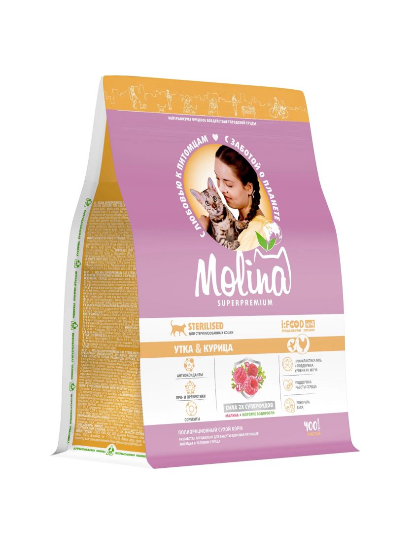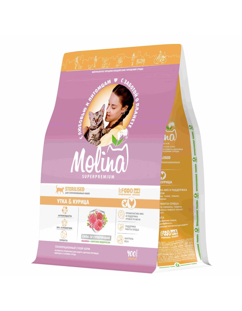 Сухой корм для кошек MOLINA стерилизованных с уткой и курицей