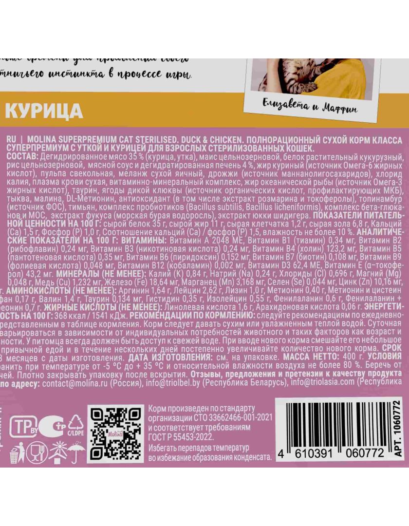 Мы разработали специальную низкокалорийную формулу. Molina: меньше калорий — больше здоровья! Витамины и белок в идеальном тандеме.