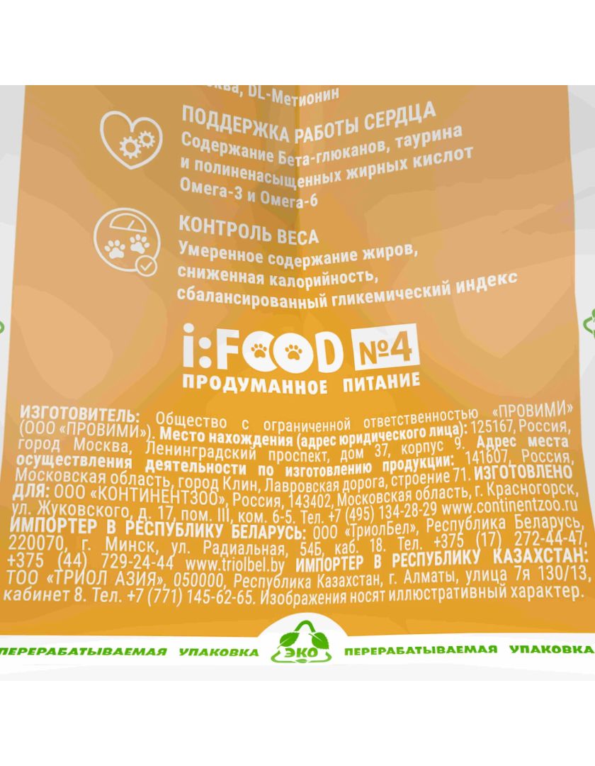 Источники белка: • Сбалансированный белок сохраняет мышечную массу, обеспечивая питомца энергией без лишних калорий. • Пониженное содержание жиров предотвращает набор лишнего веса. • Оптимальная калорийность адаптирована для питомцев с низкой физической активностью.
