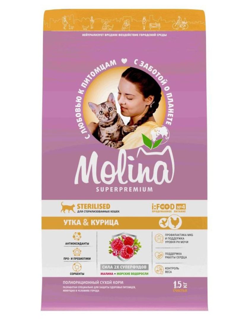 Новая линейка сухих кормов Molina для кошек и собак создана с учетом рекомендаций по питанию животных, ведущих малоподвижный образ жизни.