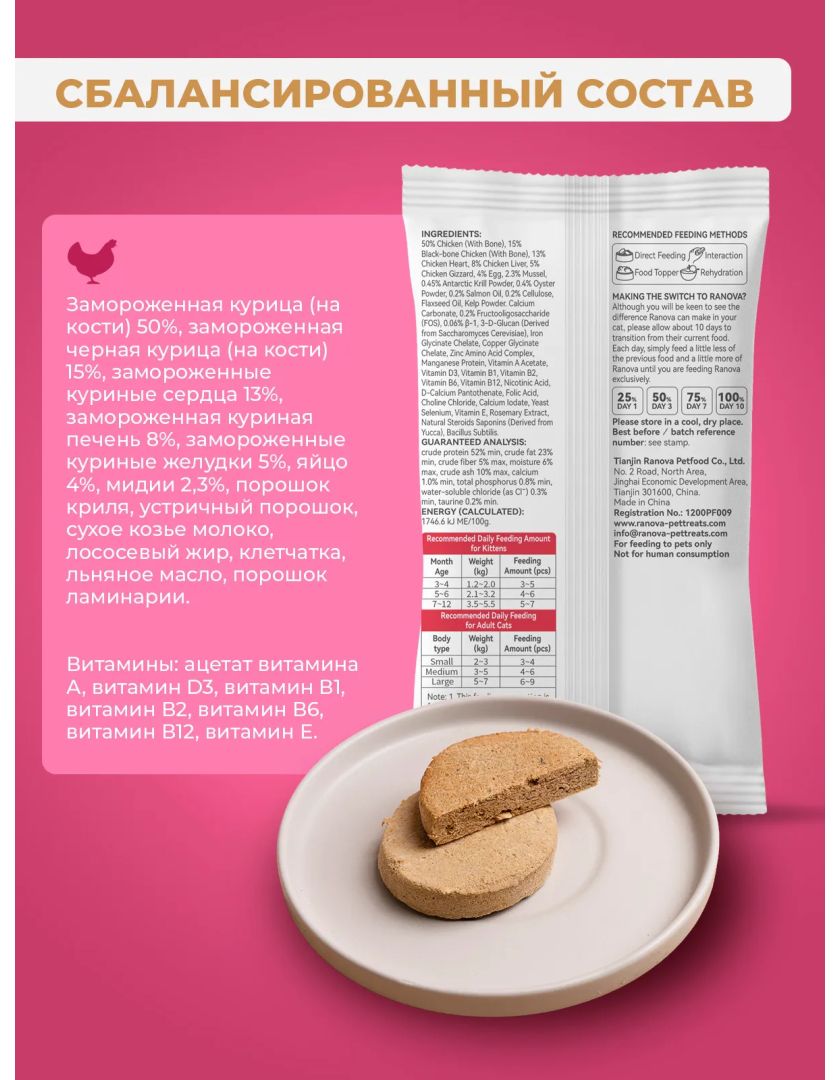 Полнорационный сухой (сублимированный) корм для кошек Ranova с курицей