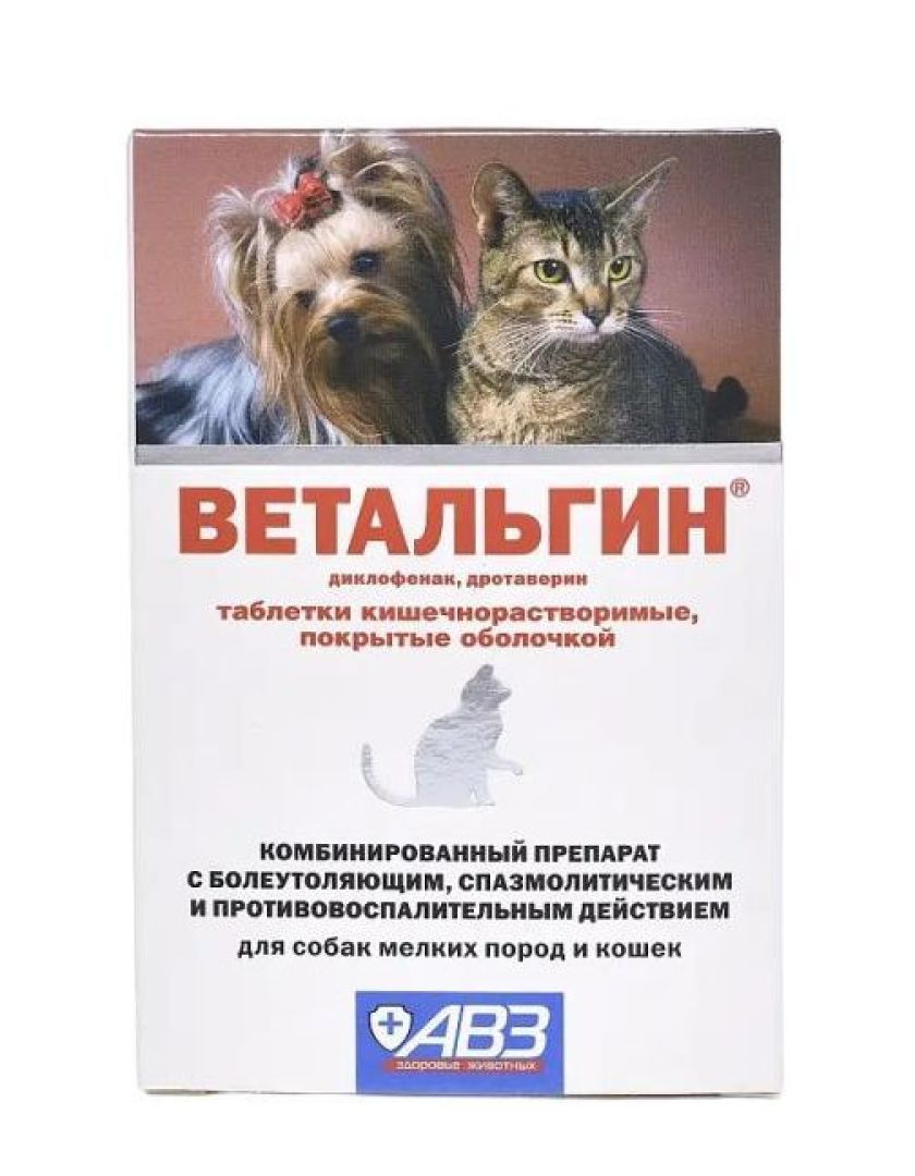 Таблетки для собак мелких пород и кошек Ветальгин болеутоляющие, спазмолитические и противовоспалительные