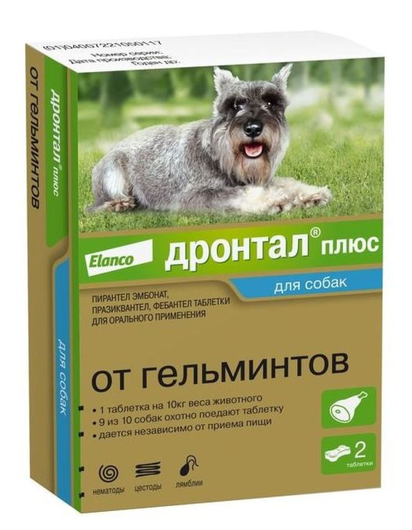 Дронтал плюс - антигельминтик широкого спектра, действующий на: различные виды круглых (токсокары, токсоскары, анкилостомы, власоглавы и др.) гельминтов; различные виды ленточных (дипилидии, тении, эхинококки и др.) гельминтов; простейших рода лямблий.