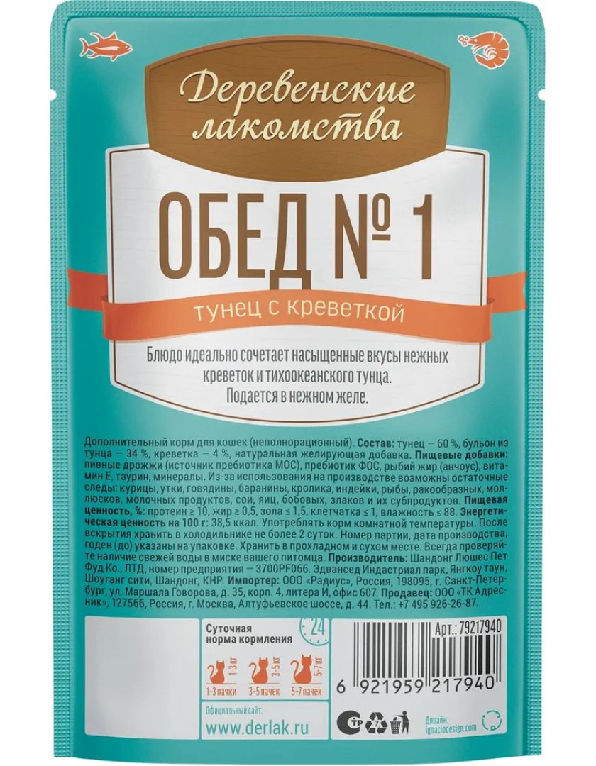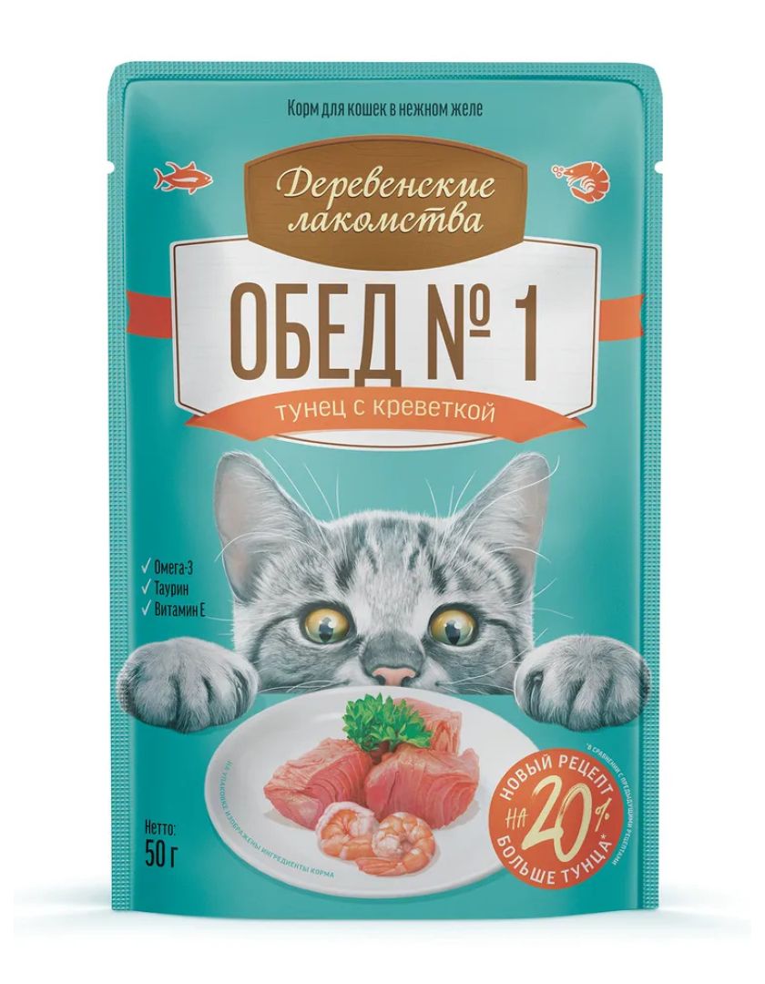 Влажный корм для кошек Деревенские лакомства "Домашние обеды" тунец с креветкой