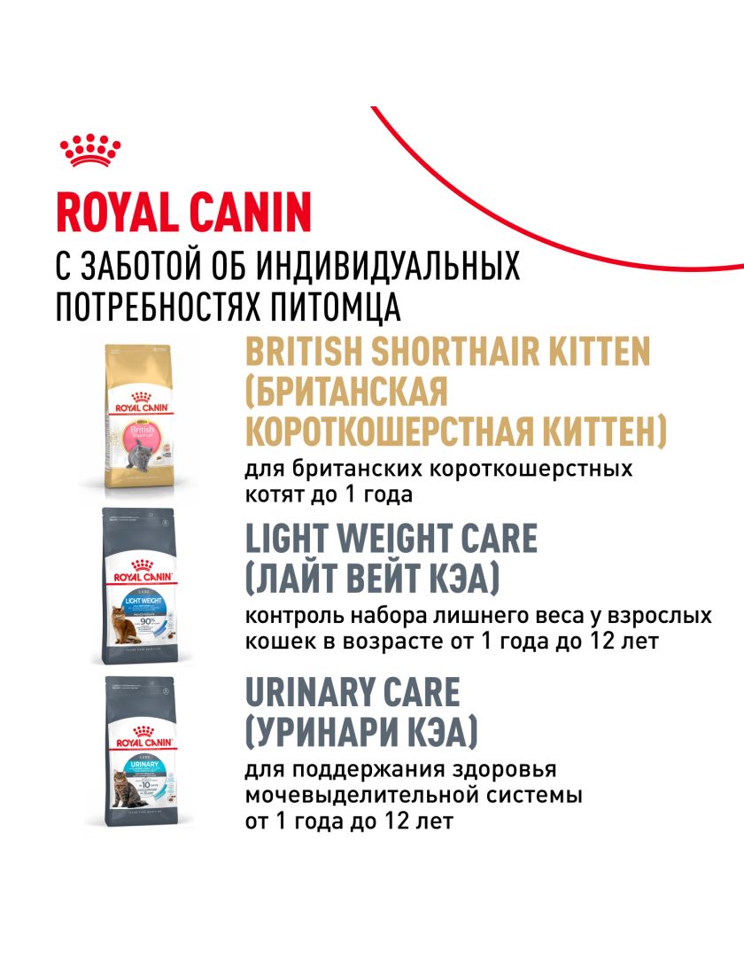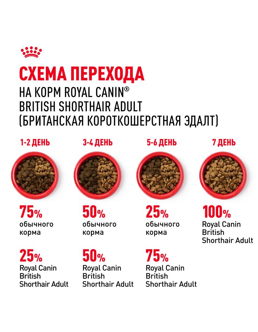 Корм сухой полнорационный сбалансированный для кошек - Специально для взрослых британских короткошерстных кошек в возрасте 12 месяцев и старше BRITISH SHORTHAIR ADULT (БРИТАНСКАЯ КОРОТКОШЕРСТНАЯ ЭДАЛТ) ROYAL CANIN®, подходящий для кошек британской короткошерстной породы в возрасте от 1 года и старше, специально с учетом потребностей вашей кошки в питательных веществах.