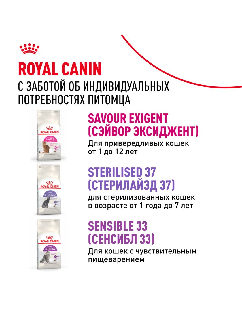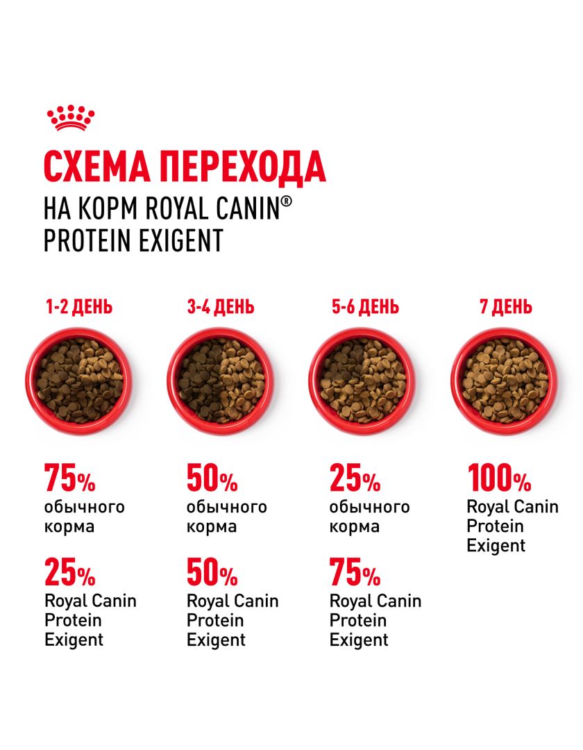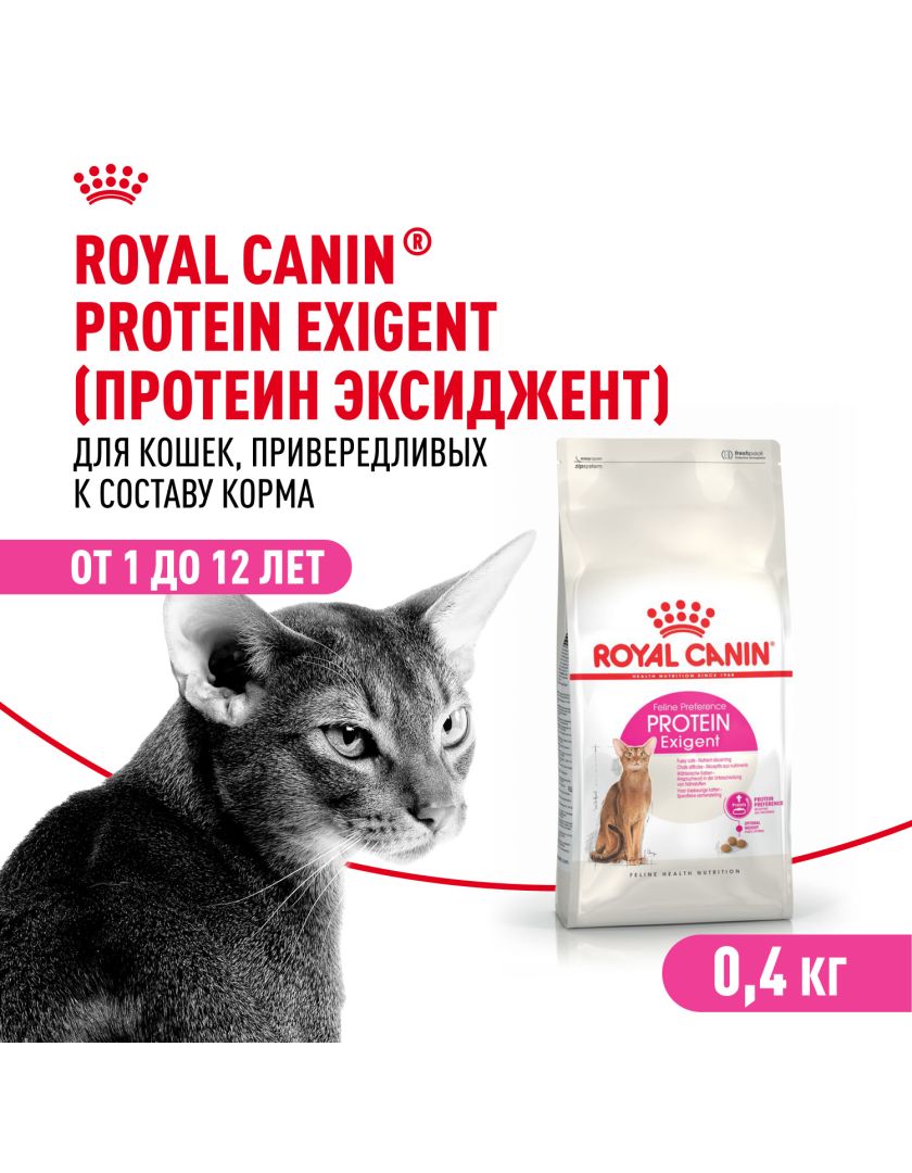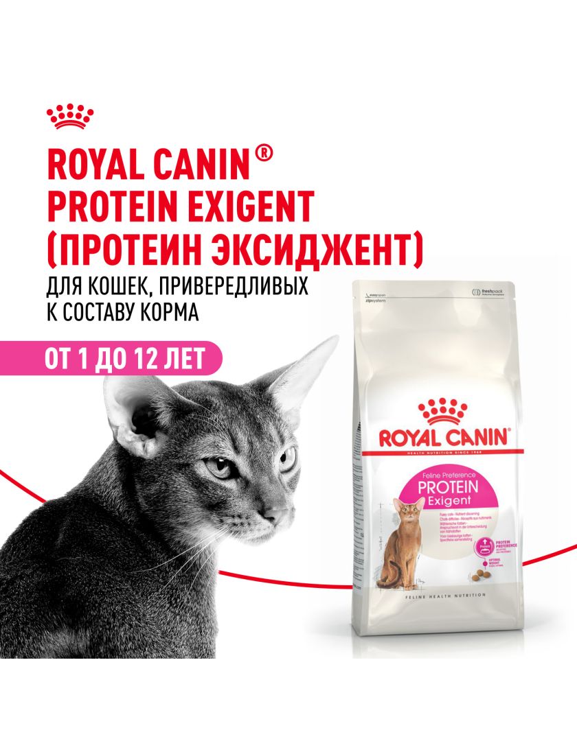 Корм сухой полнорационный для привередливых взрослых кошек в возрасте старше 1 года PROTEIN EXIGENT (ПРОТЕИН ЭКЗИДЖЕНТ) ROYAL CANIN®, подходящий для кошек, особенно привередливых к составу продукта, в возрасте от 1 года до 12 лет, специально разработан с учетом потребностей вашей кошки в питательных веществах.