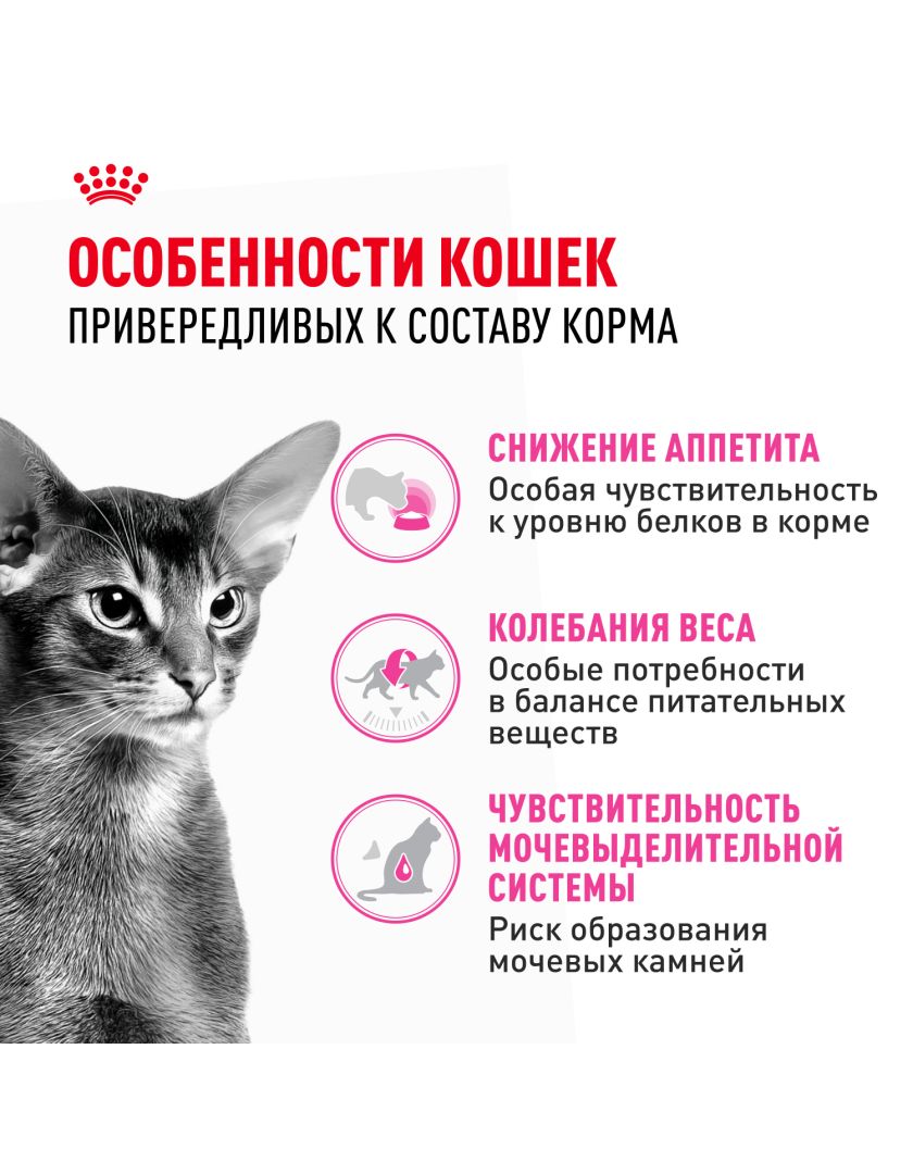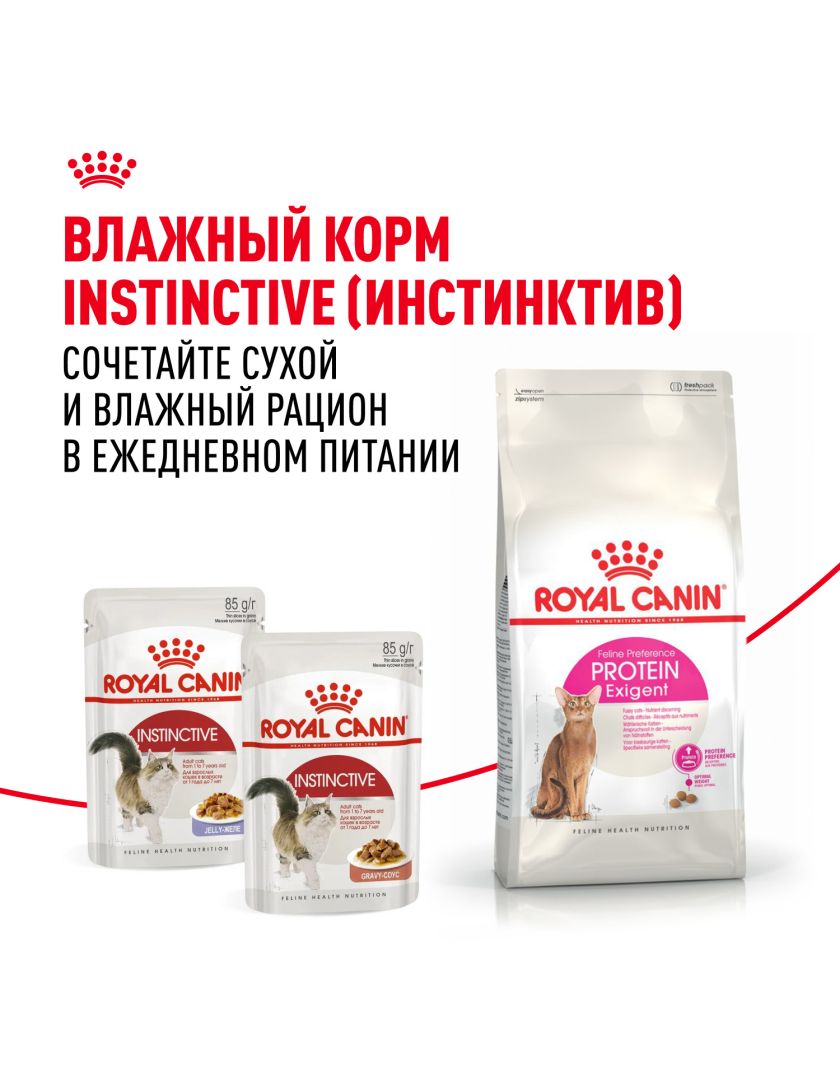 Формула ROYAL CANIN® Protein Exigent (ПРОТЕИН ЭКЗИДЖЕНТ) отличается правильным балансом белков, углеводов и жиров, позволяя удовлетворить естественные потребности привередливых кошек.