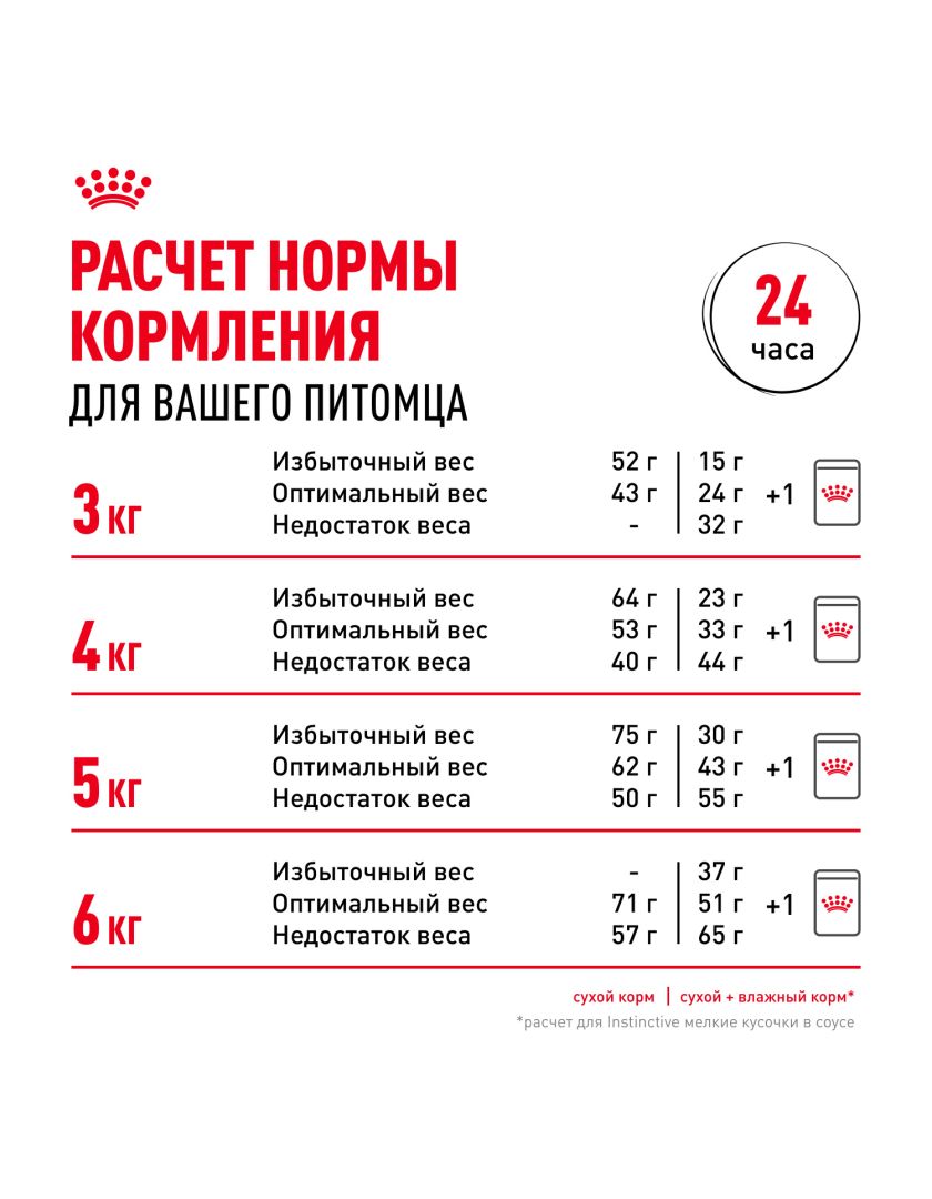 см. таблицу. Корм готов к употреблению. Проследите, чтобы у вашей кошки всегда была свежая вода. Номер серии и срок годности указаны на упаковке. Хранить в сухом, прохладном месте.